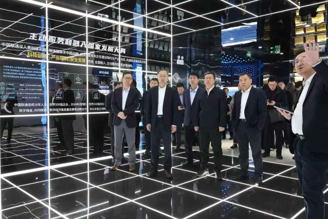 3月3日,wepoker下载 党组书记王学来一行到中国联通(辽宁)数智化创新体验中心调研。辽宁大学党委书记、中国工程院院士潘一山参加调研。辽宁联通党委书记、总经理郭林陪同调研。